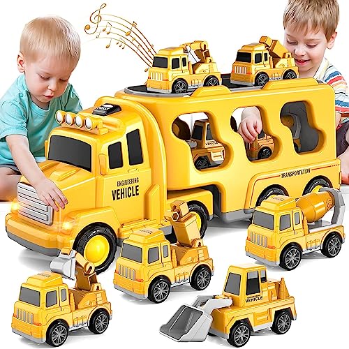 Kinder Bauwagen Spielzeug LKW für Kleinkinder Jungen Mädchen 1 2 3 4 5 6 Jahre alt, 5 in 1 Kleinkind LKWs Spielzeug für Jungen Alter 1-3 3-5, Weihnachten Geburtstag Geschenk