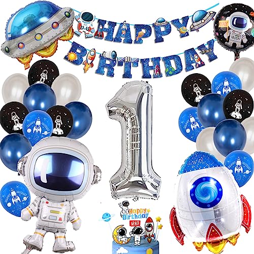♕Raum Geburtstag Dekoration Set: 1 Raum Geburtstag Glückliches Banner; Folienballon: Silberne Nummer "1" Folienballon, 1 Astronauten Folienballon, 1 Raketenfolienballon und 1 UFO Folienballon; Latexballons: 5 je in Nachtblau, Silber, Raketenblau und Astronaut Schwarz; Ein Satz Kucheneinlagen. ♕Dekorative Ballons für Kindergeburtstage sind ungiftig, harmlos und langlebig. Es unterstützt Helium oder Luft. ♕Die perfekte Dekoration für Kindergeburtstage, mit leuchtenden Farben und Astronauten, Raketenmustern und fliegenden Untertassen, bildet eine Weltraumthemenparty, perfekt für Kinder mit Weltraumträumen und Neugier, ins Universum zu gehen. ♕Du kannst den Folienballon eines Tieres mit einem Strohhalm aufblasen. Bitte verwenden Sie einen langsam expandierenden Folienballon. Folienballons sind wiederverwendbar. Es ist sehr umweltfreundlich. ♕Einfach zu installieren: Sie können Banner und Ballons an Wänden oder Decken befestigen oder verwenden, um die Wände eines Raumes zu dekorieren., Hersteller: MAKFORT