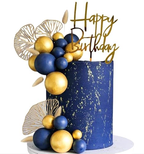 LaVenty Blau und Gold Kuchendekorationen Gold Geburtstag Kuchen Toppers Männer für Geburtstag Hochzeit Baby Dusche Party Dekoration