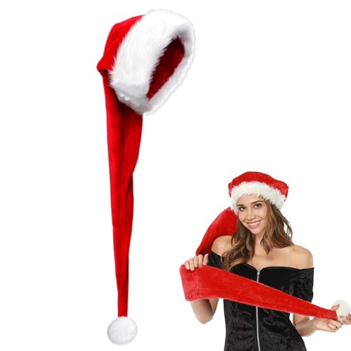 Lang Weihnachtsmütze für Erwachsene,Rot Santa Mütze mit Plüsch Rand Bequemes Dicker Klassischer nikolaus mütze aus Samt Weihnachtsmann-Kostümzubehör für festliche Partys im neuen Jahr Weihnachten
