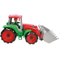 LENA® TRUXX Traktor. Verzinkte Stahlachsen. Führerhaus zum Öffnen und Bespielen. Feststellbare Schaufel mit Griff. Mit LENA® Spielfigur. 34 cm. Indoor & Outdoor geeignet für Kinder ab 2 Jahren. Verpackungsart: Lose mit Hangtag und Produktinformationen. MADE IN EUROPE. spiel gut Siegel. TÜV zertifiziert.