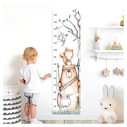 Little Deco Wandaufkleber Kinderzimmer Junge Mädchen Messlatte | 150cm Bär Hase Eichhörnchen | Tiere Wandtattoo Kinder Wandsticker Aufkleber Dekoration DL372