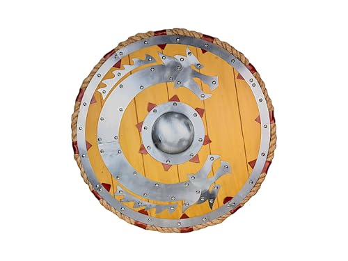 Handgefertigt aus hochwertigem Holz, ist dieses Schild für die Ewigkeit gebaut und eignet sich perfekt für Cosplay, LARPing, Kostümpartys und historische Nachstellungen Verfügt über ein realistisches Design mit aufwendigen Details, einschließlich einem Messingrand und einem Stahlgriff für einfaches Tragen Misst ca. 61 cm im Durchmesser und ist leicht für einfache Manövrierbarkeit Perfekt, um Ihrem Wikinger-Kostüm oder jedem mittelalterlichen Outfit einen Hauch von Authentizität zu verleihen Hergestellt von erfahrenen Handwerkern, die auf Details achten, um ein hochwertiges Produkt zu gewährleisten, an dem Sie jahrelang Freude haben werden