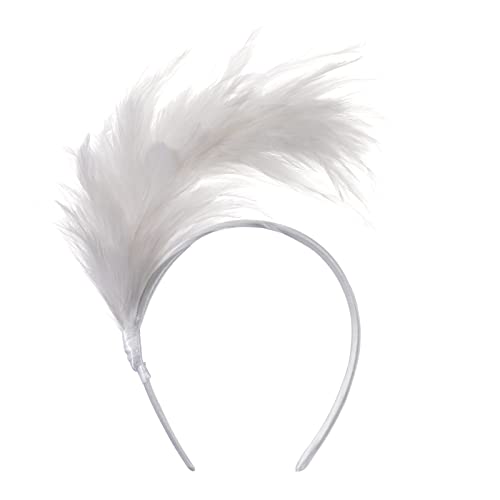 MWOOT Damen Feder Haarreif, Weiß Feder Haarschmuck, 1920er Motto Party Kostüm Feder Kopfschmuck Fascinator, Feder Haarteil Accessoire für Karneval Regenbogen Verkleidungsfest Faschingskostüm