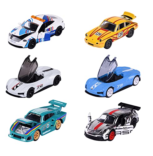 Majorette - Porsche Deluxe Auto (1 Stück) - Modellauto (7,5 cm) aus der Porsche Deluxe Car Edition (6 Varianten, zufällige Auswahl) mit Sammelbox, Spielzeugauto für Kinder ab 3 Jahre