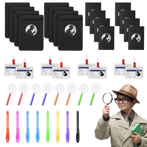 OSDUE Detektiv Set Kinder, 56 Stück Detektiv Geburtstag Mitgebsel, Detektivisches Rollenspiel mit Zauberstifte&Notizbuch, Detektive Spielzeug Kindergeburtstag Gastgeschenke für Jungen Mädchen