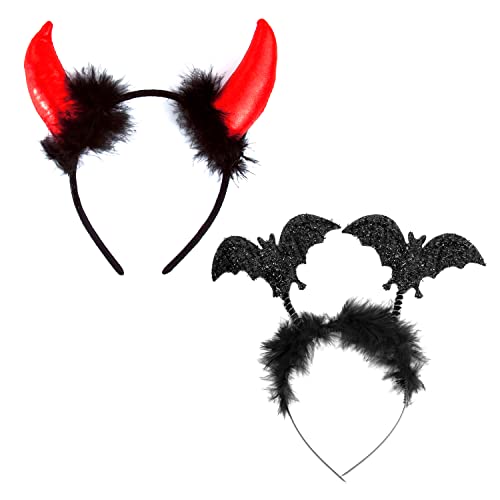 Oblique Unique® Haarreifen Set Teufel Hörner & Fledermaus Haarreif für Halloween Fasching Karneval Motto Party Kostüm Accessoires Teufelshörner
