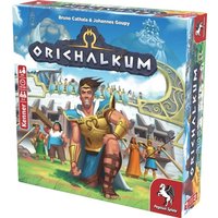 Der Sturm wütet und die Erde bebt auf Atlantis. Große Teile des Landes versinken bereits in den Fluten. Die Vorhersagen des Orakels sind unmissverständlich: Die alte Prophezeiung ist eingetreten und schon bald wird die ganze Insel untergehen. Um dem nahenden Unglück zu entgehen, sendet der König seine besten Leute aus. Sie sollen für die Bevölkerung von Atlantis eine neue Heimat suchen. Das Überleben der gesamten Zivilisation hängt davon ab! Als Anführende einer solchen Expedition liegt es in Orichalkum an den Spielenden, die nahegelegenen Inseln zu erkunden, nutzbar zu machen und von monströsen Kreaturen zu befreien, damit die große Umsiedelung der Atlantiden gelingen kann. Dazu wählen sie jede Runde ein Plättchen mit ein bis drei Landschaftsfeldern und eine Karte mit einer Aktion aus. Das Plättchen legen sie auf ihrem eigenen Inseltableau an, anschließend dürfen sie die Aktion der Karte ausführen. Damit können sie schlagkräftige Hopliten rekrutieren, das legendäre Metall Orichalkum in ihren Minen fördern, monströse Kreaturen bekämpfen, Gebäude oder Tempel errichten und Orichalkum-Medaillen schmieden. Wer durch Medaillen, Tempel und die Hilfe der mächtigen Titanen zuerst fünf Siegpunkte über seinem Inseltableau gesammelt sowie alle Kreaturen auf der Insel besiegt hat, gewinnt.
