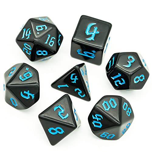 Pen and Paper Würfel Set - 7-teiliges, Midnight Edition, polyedrische Rollenspiel-Würfel, für Dungeons and Dragons (D&D), Das Schwarze Auge (DSA), Aborea, Splittermond, Shadowrun (blau)