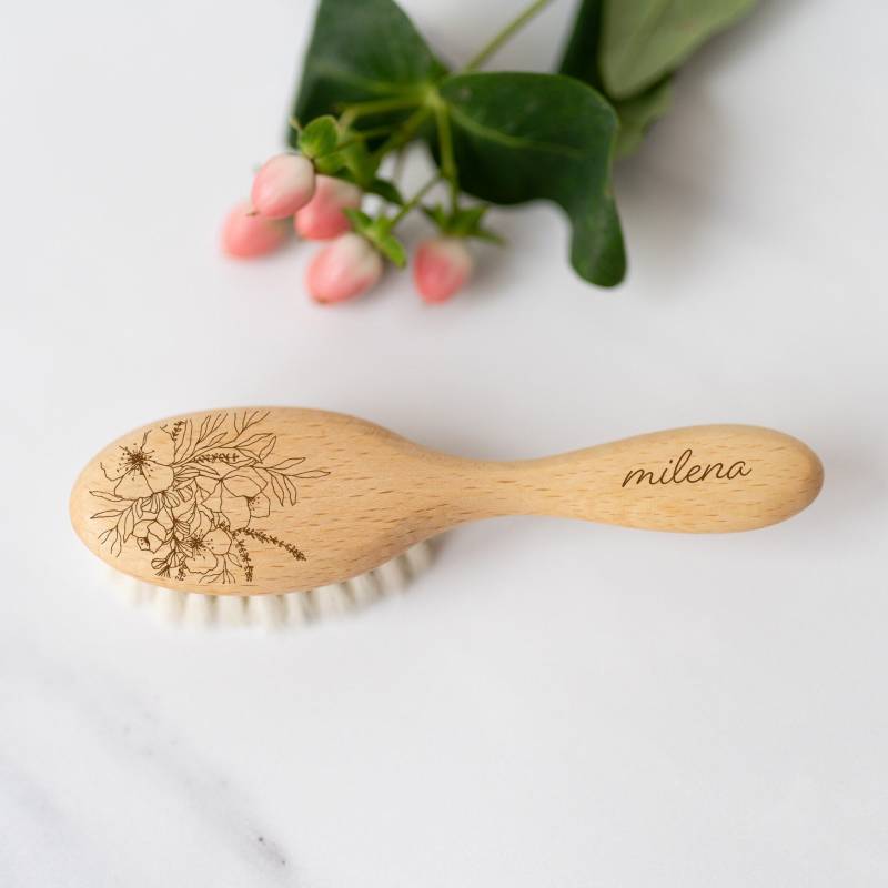 Personalisierte Babyhaarbürste Bouquet | Geschenk Zur Geburt Babybürste Ziegenhaar Baby Taufe Babyparty