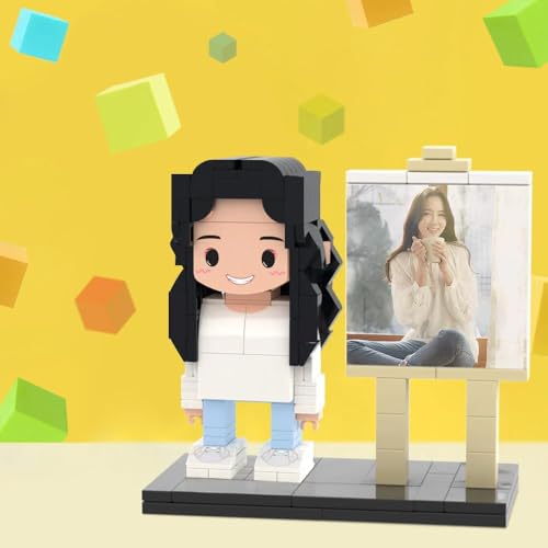 Personalisierte Figuren aus Bausteine, Ganzkörper 1 Person Kleines Teilchen Bausteine,Süße Version mit Foto Rahmen Einzigartig Weihnachten Valentinstag Geburtstag Geschenke für Männer, Frauen