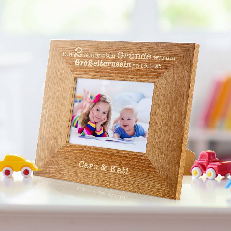 Ein besonders schöner Fotorahmen für Großeltern Was schenkt man seinen Großeltern zu Weihnachten? Nun, da Großeltern in der Regel schon alles besitzen, was man so im Leben benötigt, ist die Wahl eines geeigneten Geschenks für die Oma und den Opa gar nicht so leicht. Aber es gibt wohl keine Großeltern, die sich nicht über ein personalisiertes Geschenk freuen, das mit der Familie zu tun hat. Fotos von Enkeln kommen zum Beispiel immer gut an und vor allem dann, wenn sie stilvoll eingerahmt sind. Genau an dieser Stelle kommt der Personalisierte Bilderrahmen - Warum Großelternsein so toll ist ins Spiel! Bei diesem Geschenk sieht man direkt, dass es vom Herzen kommt. Die Besonderheit an diesem Rahmen ist nicht etwa das hochwertige Holz, aus dem er besteht, sondern die Personalisierung, die wir nach Deinen Angaben vor der Auslieferung des Rahmens vornehmen! Diese besteht aus einer individualisierten Gravur. Um genau zu sein handelt es sich um zwei Aufschriften, die oben und unten auf dem