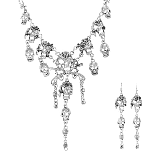 Piraten Accessoires Damen mit Piraten Kette Damen, Piraten Ohrringe Damen, Halskette Totenkopf Ohrringe, Piraten Schmuck Damen, für Karneval Halloween Cosplay Mottopartys für Erwachsene und Kinder