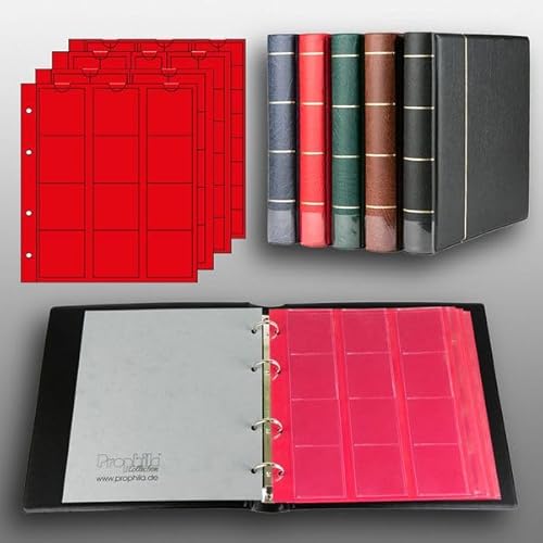 Prophila Collection Münz-Album mit 4 Hüllen (rote Zwischenblätter) für 110 Münzen schwarz