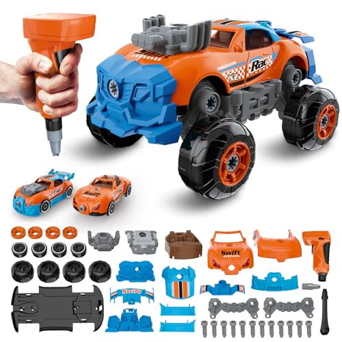 Pup Go 3-in-1 Montage Spielzeug Auto für Jungen 3-8 Jahren, 43 Teile mit Elektrischem Bohrer, Zusammenbauen, Baue Dein Eigenes Auto mit Werkzeugen, Kinder (Orange)