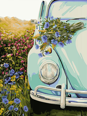 Das Kit beinhaltet die Leinwand (40 x 50 cm), fertig gemischte Acrylfarbe, Pinsel und ein Kontrollblatt.