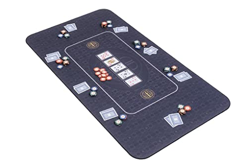 Legen Sie die Matte einfach auf einem beliebigen Tisch aus und Sie haben sofort eine Spielfläche für alle Kartenspiele. Wir empfehlen einen Tisch, der ähnlich groß oder größer als die Matte ist. Perfekte glatte Spielfläche! Schnelle, glatte, weiche und auslaufsichere Spielfläche, perfekt für Kartenspiele. Luxuriöse, 4 mm dicke Polsterung und eine weiche, rutschfeste Unterseite. Aufgerollt für einfache Lagerung und Transport. Hochwertige, elegante Tragetasche mit verstellbarem Riemen und Seitentasche. Sublimation gedruckt dauerhafte hohe Dichte Neopren-Material. Aufgedruckte Einsatzlinie, um Verwirrung zu vermeiden und Klarheit über die Aktionen während des Spiels zu gewährleisten. Spielen Sie Ihre Casino- und Pokerspiele überall, perfekt für Touren, Ligen und Kneipen! 30 Tage Rückgabefrist. 12 Monate Garantie., Hersteller: Riverboat Gaming Poker