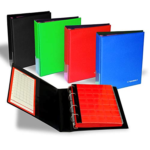 SCHULZ Münzenalbum Münzalbum mit 10 Münzhüllen für 350 Stück Verschiedene Münzen-Größen mit Seiten und Roten Trennblättern + Index (Grün)