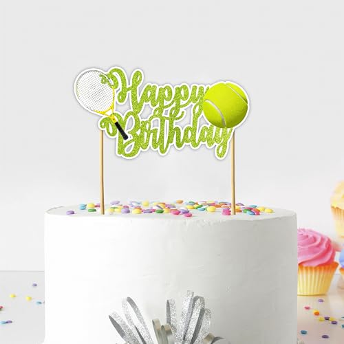 Tennis Happy Birthday Cake Topper - Sport Thema Party Dekoration für Tennisliebhaber, Kinder & Erwachsene - Grün & Gold Glitter Cake Topper für Tennis Geburtstag Feiern