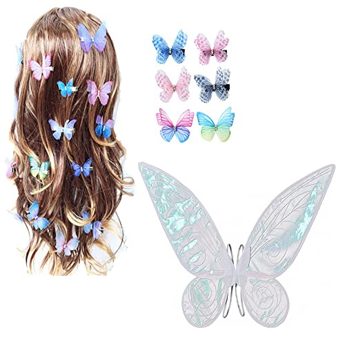 Aunaeyw Fee Flügel für Mädchen Kinder Erwachsene Schmetterling Fee Flügel Elf Engel Flügel Halloween Kostüm für Sparkle Princess Party Favor (White fairy wings)