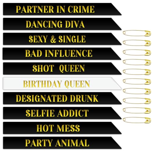 BLMHTWO 10 Stück Birthday Queen Schärpe - Schwarz und Weiß Geburtstag Accessoires für Frauen - Geburtstagsgeschenke Partygeschenke