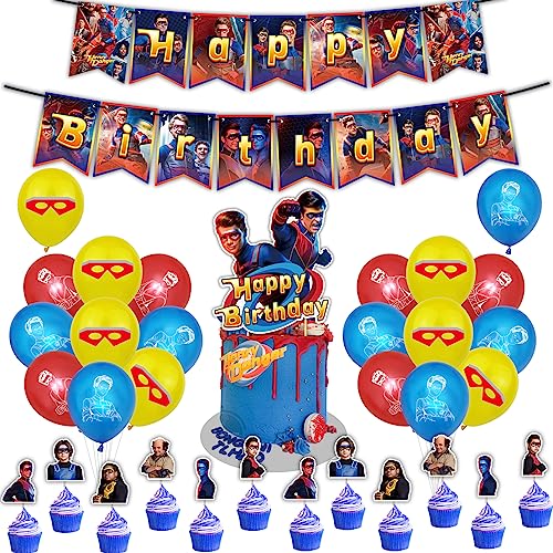 Henry Geburtstag Deko - Kindergeburtstag Party Luftballons, Torten Topper und Banner für Henry Danger Thema