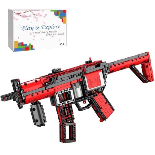 JOMIOD MP5 Maschinenpistole Bausatz, 732 Klemmbausteine, Rot, Batteriebetrieben, Modellwaffen-Bausatz, Waffenkit