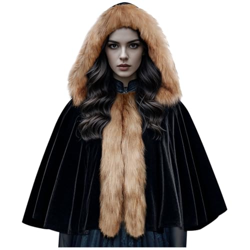 keland Wikinger Fell Umhang Samt Kapuzenumhang Mittelalter für Halloween (Schwarz)