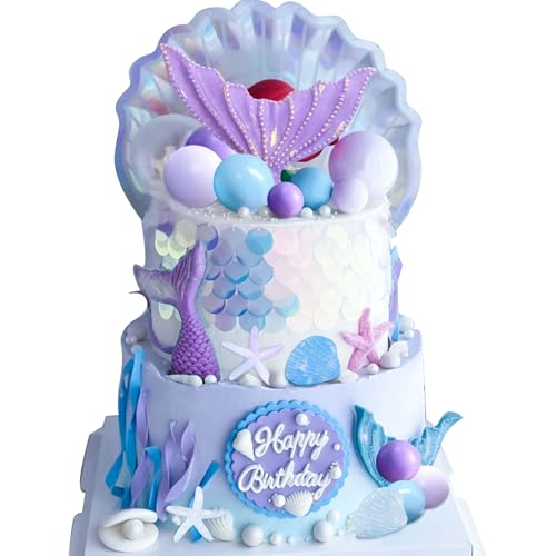 LaVenty Meerjungfrau Kuchen Dekoration Lila Ball Kuchen Dekoration Meerjungfrau Unterwasser Ozean Geburtstag Dekoration (Rosa Lila 2)