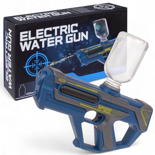 MIJOMA Automatische Seifenblasenpistole - Vielfältige Seifenblasenmaschine für Drinnen & Draußen, Inklusive 60ml Seifenblasenlösung - Spielen & Entdecken - Batteriebetrieben (blau)