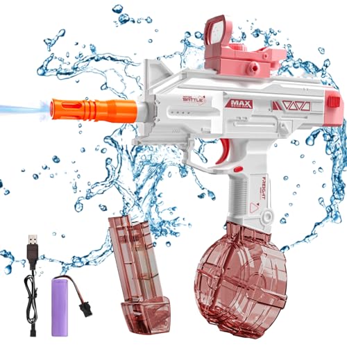 Maxee Elektrische Wasserpistole Uzi-SMG Pistols 25-32 ft mit Großer Reichweite EIN-Knopf-Automatik Wasser Spielzeug Pistolen für Kinder Erwachsene Sommer Schwimmbad Party Strand im Freien B-pink
