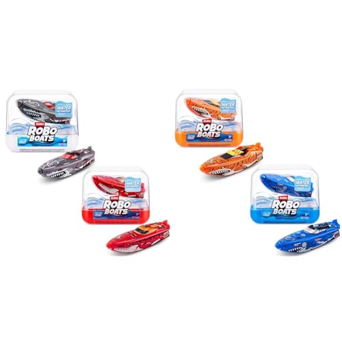ROBO ALIVE ZURU Robo Boats, White Shark & Dino Shark Boat, 2 Pack, (Amazon Exclusive) & ZURU Robo Boats, Tiger Shark & Robo Shark Boat, 2 Pack, (Amazon Exclusive)