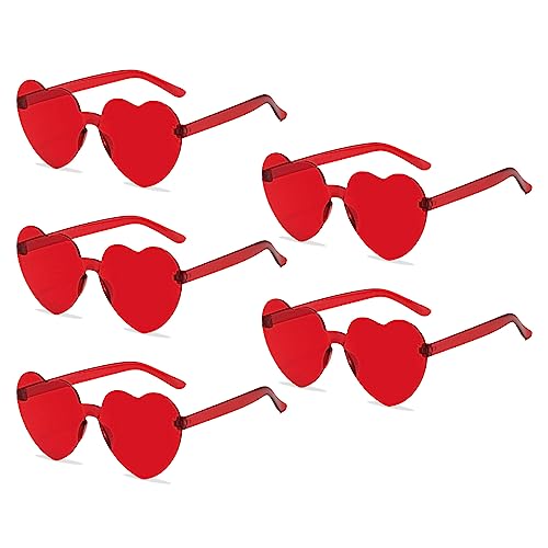 TSHAOUN 5 Paare Herz Sonnenbrille Hippie Brille, Nette Prom-Brille, Randlose Sonnenbrillen in Herzform, Retro Herz Sonnenbrille,Schutz Hippie Herzbrille Aesthetic Heart Glasses Kostümzubehör (Rot)