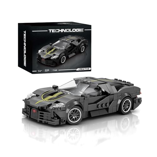 VizBrou Rennwagen Speed Champion Bausteine Set, Bugattti La Voiture Noire Sportwagen Klemmbausteine Modell Kit, 385 Teile Kompatibel mit LG Superauto Bausatz Spielzeug Geschenk für Erwachsene Kinder