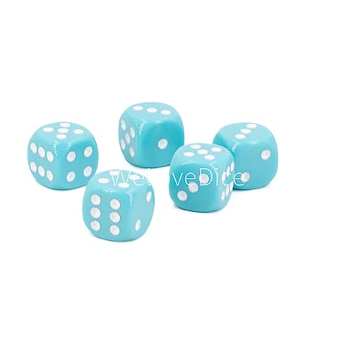 16mm W6 Würfel türkisblau transparent/weiß - Made in Germany! - 5Stk