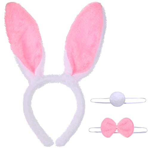 Hase Cosplay Kostüm Zubehör - Kaninchen Ohren Stirnband, Plüsch Ostern Schwanz und Krawatte für Kinder und Erwachsene (Weiß)