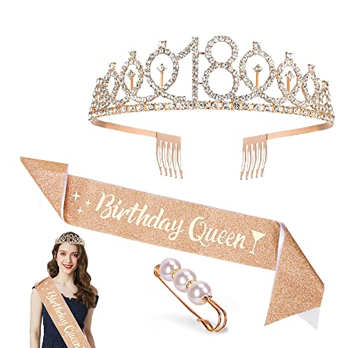 18. Geburtstag Krone Schärpe, Geburtstag Tiara Gold Geburtstag Schärpe Haarnadel, Junggesellinnenabschied Set für 18 Geburtstag Deko Geschenk Mädchen Party Accessoires