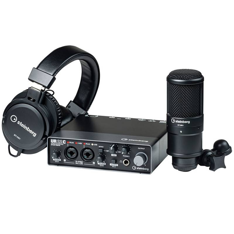 Das UR22C Recording Pack besteht aus einem zweikanaligen Audio-Interface (Steinberg UR22C) mit USB-Typ C-Anschluss, einem Kondensatormikrofon (ST-M01) inkl. Kabel und einem Monitor-Kopfhörer (ST-H01). Das Interface überzeugt durch zwei Class-A D-PRE Mikrofonvorverstärker mit +48 V Phantomspeisung und latenzfreiem DSP-unterstütztem Monitoring. Um direkt loslegen zu können mit den ersten Aufnahmen, ist im UR22C Recording Pack eine umfassende Software-Suite dabei. Somit ist das UR22C Recording ein benutzerfreundliches Produktionssystem für Mac, PC und iPad. Das Interface ist abwärtskompatibel zu USB 2.0 und 3.0, hat einen Mono-Schalter (Input 1 + 2 als ein Stereo- oder zwei Monokanäle) und bietet eine Loopbackfunktion. enthaltene Software: - Cubase AI - Cubasis LE - dspMixFx UR-C Mixing-Software - Steinberg Plus · USB Audiointerface · Bauform: Desktop · Unterstützte Betriebssysteme: Mac OS 10.13 (und höher), iOS 10-14, Windows 10 (und höher) · Gleichzeitig nutzbare Eingangskanäle: 2 · · Audio Interface