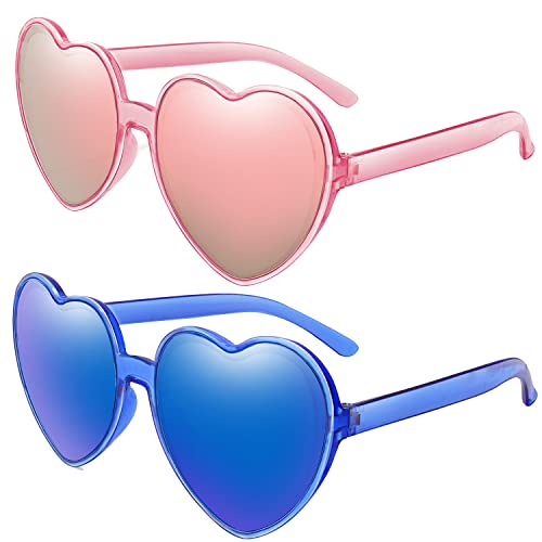 Sugeru 2 Paar Neue reflektierend herzbrille,herz sonnenbrille damen, amor kostüm Zubehör,partybrille,brille herz,hippie sonnenbrille,lustige brillen,für Erwachsener Junge Mädchen(rosa+blau)