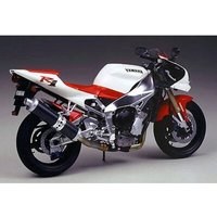 Art.Nr.: 300014073 Artikelbezeichnung: 1:12 Yamaha YZF-R1 1000ccm 1997 Street At the Motorcycle Show held in Milan, Italy, in September of 1997, the Yamaha YZF-R1 supersport motorcycle made its debut. Sporting a powerful 1000cc engine, it has the compact construction of a 400cc bike. The YZF-R1 was developed for maximum possible cornering ability in a production motorcycle. With a 1000cc water-cooled, four stroke, 4-cylinder, 5-valve engine and adopting a redesigned EXUP exhaust system, it pumps out 150hp of high-intensity power. Subtle throttle control makes both superb acceleration response and rhythmic cornering a reality. The Deltabox II aluminum frame was sought after not only for its rigidity, but more so for its moderate flexibility during tight cornering. With the addition of a long span aluminum swing arm, high control ability has been achieved. By adopting an upside-down front fork, stroke distance has been increased and traction heightened. Boasting a sharp form with multi-reflector lights, the YZF-R1 has been given an unprecedented style. From the contact points between the rider and motorcycle, right down to the material used in the seat and tank, the YZF-R1 has been thoroughly studied. Of course, the abundance of high precision and high quality parts goes without saying. Designed to cruise at high speeds on winding roads, the YZF-R1 shatters expectations about large exhaust engine motorcycles. Yamaha has expanded the possibilities of a 1000cc bike.