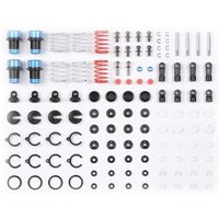 Art.Nr.: 300054000 Artikelbezeichnung: Dämpfer-Set 4x Alu M-Chassis Up to now, M-Chassis owners have had to make do with touring car aluminum dampers when up grading their cars. Tamiya has now developed this new set of 4 dampers specifically for the M-Chassis, featuring damper cylinders and damper rods that are 2mm shorter. As a result, the chassis' ride height is lowered and damper stroke can be more accurately customized. A hard black coating reduces friction and serves as a nice contrast to the blue damper caps and included white damper springs. *Compatible Chassis: M-03, M-04, M-05 and M-06