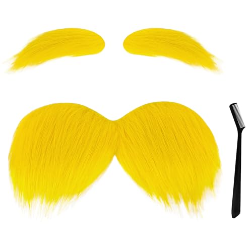 Vifcotlyp Gelbe Schnurrbart Und Augenbrauen Set, Schnurrbart Zum Ankleben Lorax Kostüm Schnurrbart Gefälschter Bart Für Männer Frauen Neuheit Schnurrbart Party