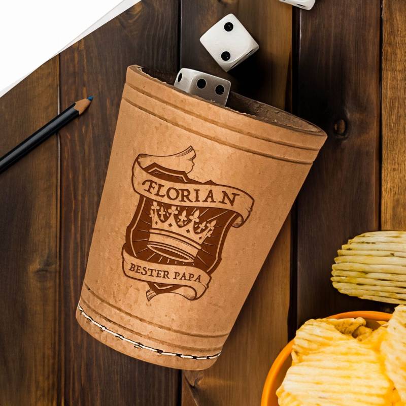 Knobelmeister Deluxe für Papas Tauche ein in die faszinierende Welt des Knobelns mit unserem einzigartigen Personalisierten Knobelbecher, der nicht nur deinen Namen trägt, sondern auch mit stolz präsentiert: bester Papa, um zu zeigen, wer hier der wahre Knobelchampion ist! Jeder Becher ist ein Meisterwerk, mit liebevoller Namensgravur und einem Augenzwinkern für den unschlagbaren Würfel-Champion in deinem Leben. Das Set enthält nicht nur den individuell gestalteten Knobelbecher, sondern auch sechs klassische Würfel, die perfekt ausbalanciert sind, um das Würfelspiel deiner Wahl zu einem echten Highlight zu machen. Egal, ob du nach einem unterhaltsamen Familienspiel suchst oder einen Abend mit Freunden planst – dieses Set ist der Schlüssel zu unzähligen Stunden voller Lachen, Spannung und natürlich dem Streben nach dem begehrten Besten Papa Titel. Dieser personalisierte Knobelbecher ist nicht nur ein Geschenk für Spielbegeisterte, sondern auch eine herzliche Geste, um dem besten