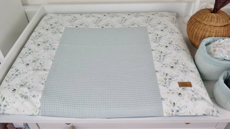 Wunschmaß - Wickelauflage Set Eukalyptus Bouquet Waffel Ozeanblau