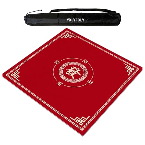 YXLYFDLY Quadratische Mahjong-Matte mit schwarzer Tragetasche, rutschfeste und verschleißfeste Tischdecke, Tischmatte für Mahjong Paigow Poker und Legespiele (Rot, 70 cm)