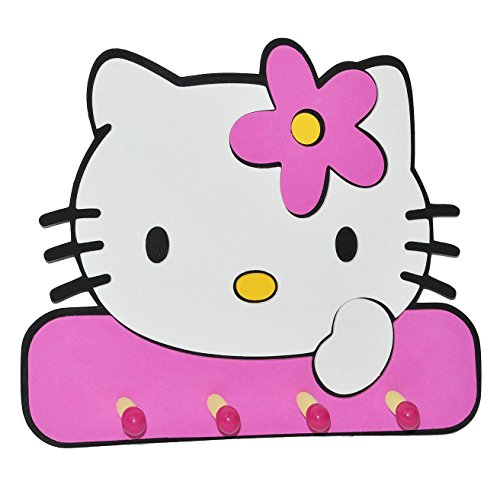 alles-meine.de GmbH 3-D Kindergarderobe - Hello Kitty - mit 4 Kleiderhaken Moosgummi - Garderobenhaken Wandhaken Kinder Garderobe Kind Wandgarderobe Haken - Kleiderhaken - Wandga..