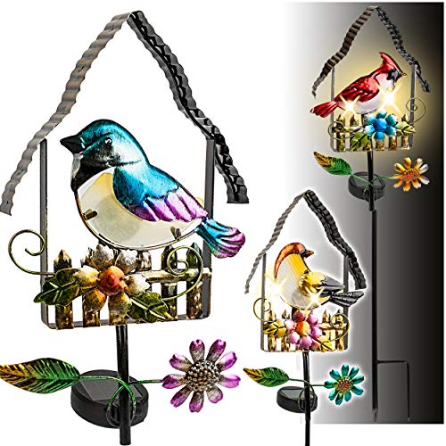 alles-meine.de GmbH 3 Stück Solar - LED Licht - Farbwechsel - Vogelhaus - mit Vogel & Blumen - 66 cm - Leuchte - Solarblume - Garten Wetterfest für Innen Außen - handbemaltes G..