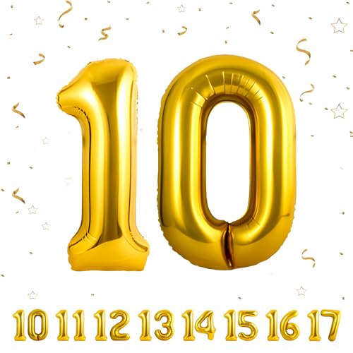 ballonluftballon 10 jahre | Gold 10 ballons-40"-101cm 10 Geburtstagsdeko -10 Folienballon Zahl Deko zum Geburtstag fliegt mit Helium 10 Geburtstag für Männer Frauen 10 Geburtstagsparty Jubiläum