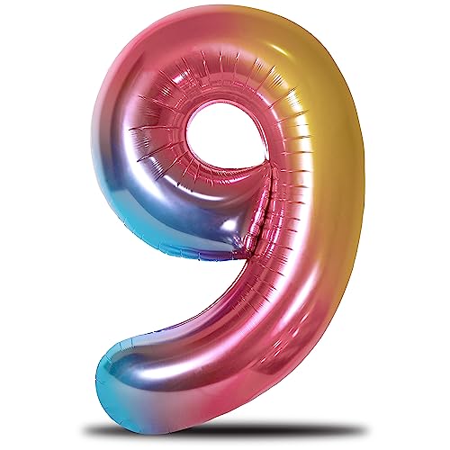 LUFTBALLON Nr. 9: In Regenbogenfarben. XXL Folienballon Rainbow 40" (101cm). Hochwertig verarbeitet, für schöne Geburtstagsmomente, Partys und Jubiläen. Für jedes Geburtstagskind geeignet! INKLUSIVE AUFBLASHILFE, einsatzbereit in wenigen Minuten! Die Folienballons können mit Helium oder Luft befüllt werden. Das Ventil schließt sich selbstständig und hält Helium für bis zu 8 Tage. HELIUM ODER LUFT: Die Zahlenluftballons können mit Helium oder Luft befüllt werden. Das Aufblasen kann über eine einfache Aufblasröhrchen (im Zubehör enthalten) erfolgen und dauert nur wenige Minuten. Das Ventil schließt sich selbstständig und hält Helium für bis zu 8 Tage EINFACHE BEFESTIGUNG: Die Luftballons sind mit jeweils vier Laschen zur Befestigung ausgestattet. Heliumgefüllte Ballons werden so an Ort und Stelle gehalten. Luftbefüllte Ballons können Sie einfach von der Decke hängen lassen. FLIEGT MIT HELIUM: Werden die großen Zahlen mit Helium gefüllt, schweben sie für bis zu 8 Tage. Sorgt garantiert für eine große Überraschung und gibt der Party das gewisse Extra., Hersteller: Vertfort Ltd